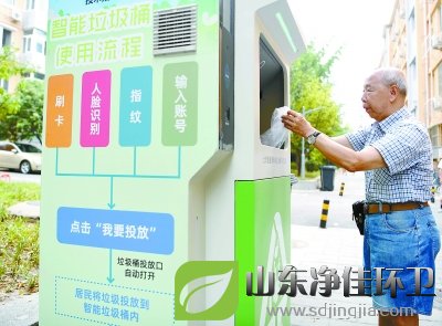 建國門街道外交部街33號院居民正在使用新安裝的智能垃圾桶。小區(qū)內(nèi)新設(shè)的6臺單體智能垃圾桶,可以進(jìn)行人臉、指紋識別,還可以刷積分卡,方便居民更好地分類投放廚余垃圾,同時還能及時記錄每個用戶參與分類的頻次和數(shù)量。本報記者 和冠欣攝